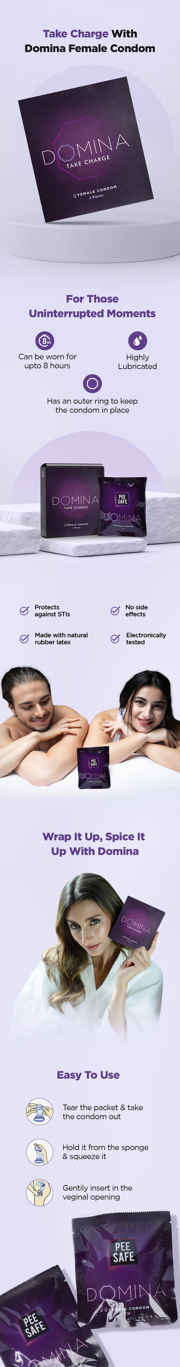 Female condom, also called an internal condom, is a contraceptive barrier that prevents sperm from reaching the uterus. It is bigger than a male condom, is inserted into the vagina, can be worn for upto 8 hours & you don't even have to be turned on to wear it!